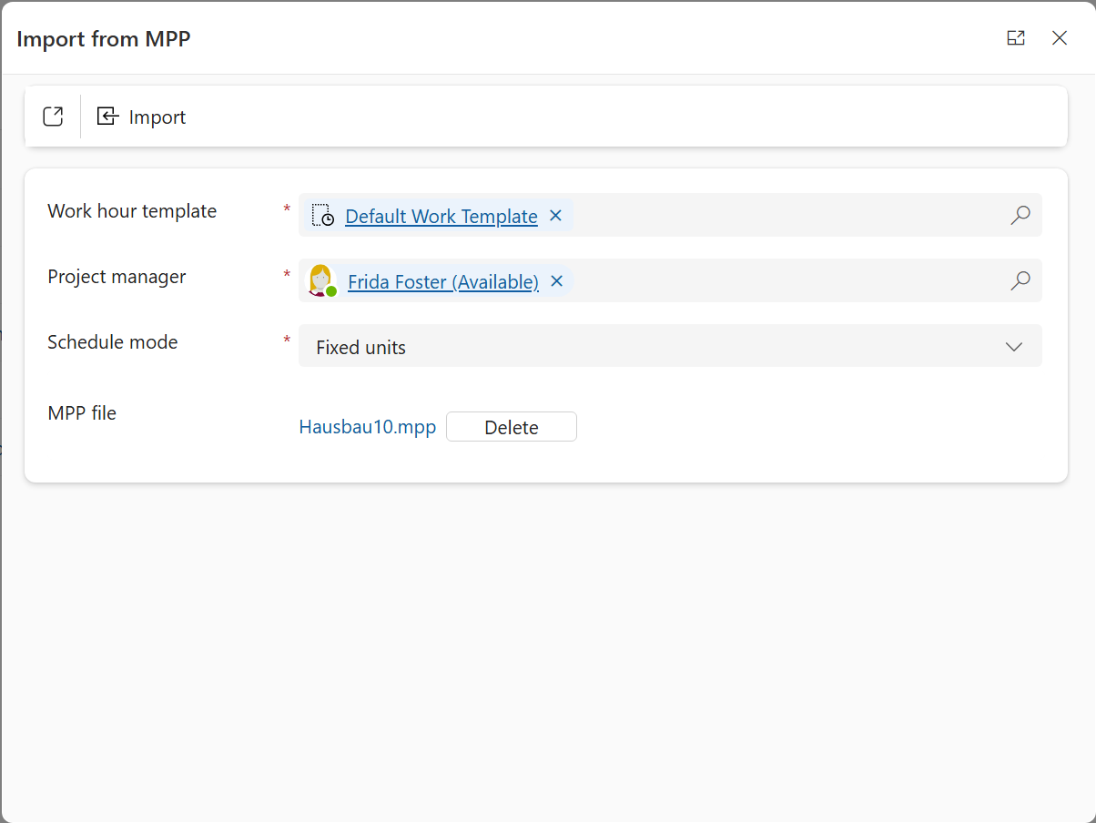 Open the Microsoft Project desktop app and select New from Excel workbook.